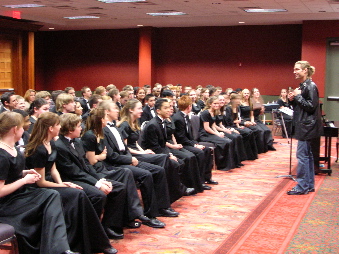 Eric speaks to the Arlington HS chorus just before their concert in the afternoon. They performed Lux Aurumque as well!